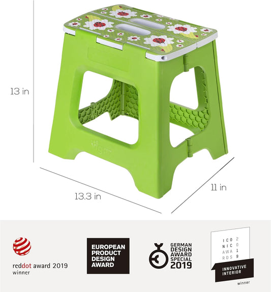 Compact Foldable Stool, 12-1/2 Inches, Lightweight, 330-Pound Capacity Non-Slip Folding Step Stool, Ladybug on Top